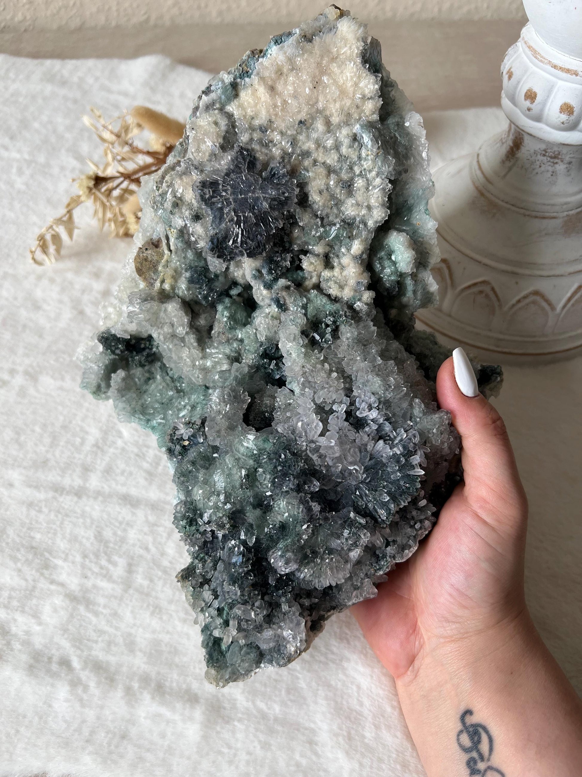 Großer Zeolith-Cluster - Naturkunstwerk in Grün, Blau & Weiß | Edelstein zur energetischen Reinigung